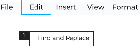 - Find and Replace can be accessed from Edit > Find and Replace