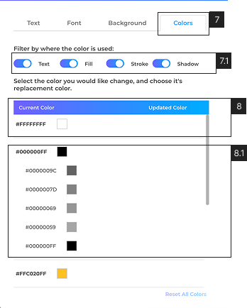 7.1 Select from where you want to replace the colors from [Text, Fill, Stroke, Shadow]